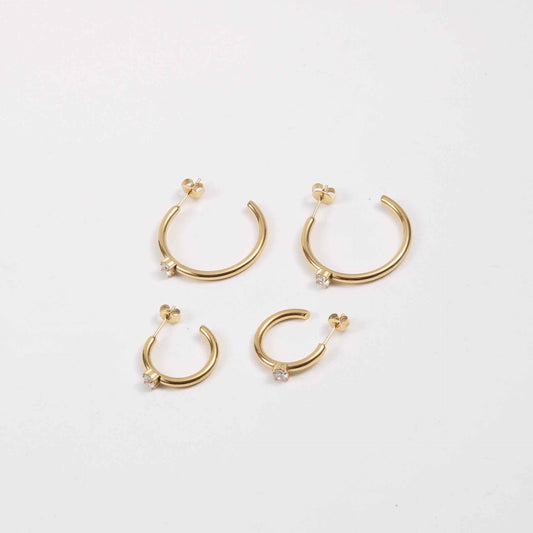 C Font Zircon Earrings - Minimalist Geometric Design in 18K Gold Titanium Steel